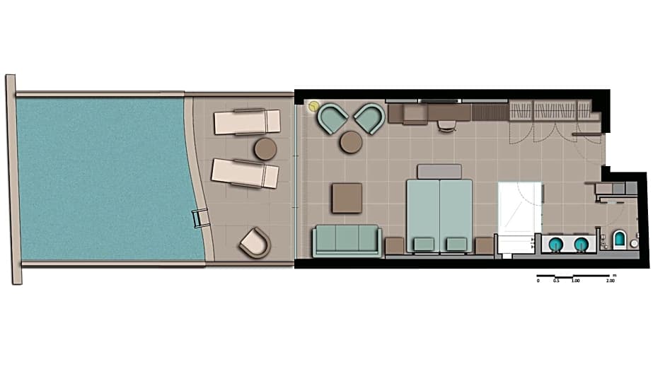 Each one of the air-conditioned suites comes with a relaxing terrace with stunning sea views and an exclusive swimming pool.
